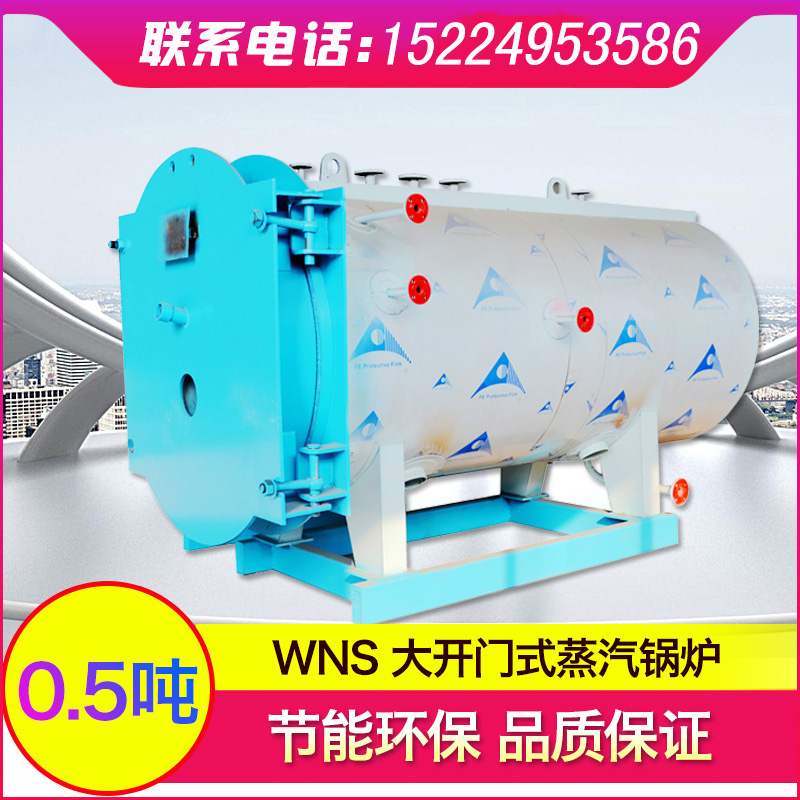 CWNS0.7-95/70-Y(Q)型全自動燃油(氣)熱水機(jī)組為快裝臥式內(nèi)燃三回程火管結(jié)構(gòu)。采用偏置爐膽濕背式布置,高溫?zé)煔庖来螞_刷第二及第三回程煙管,然后由后煙室經(jīng)煙囪排入大氣。鍋爐配置世界名牌燃燒器,采用了燃燒自動比例調(diào)節(jié),給水自動調(diào)節(jié),程序啟停,自動運(yùn)行等先進(jìn)技術(shù),并具有運(yùn)行水溫度控制、超溫、超壓熄火等自動保護(hù)功能。該型鍋爐具有結(jié)構(gòu)緊湊、安全可靠、操作簡便、安裝迅速、污染少、噪音低、效率高等特點(diǎn),廣泛適用于企業(yè)、賓館、醫(yī)院、寫字樓、民用建筑等設(shè)施工業(yè)用汽和生活及采暖。