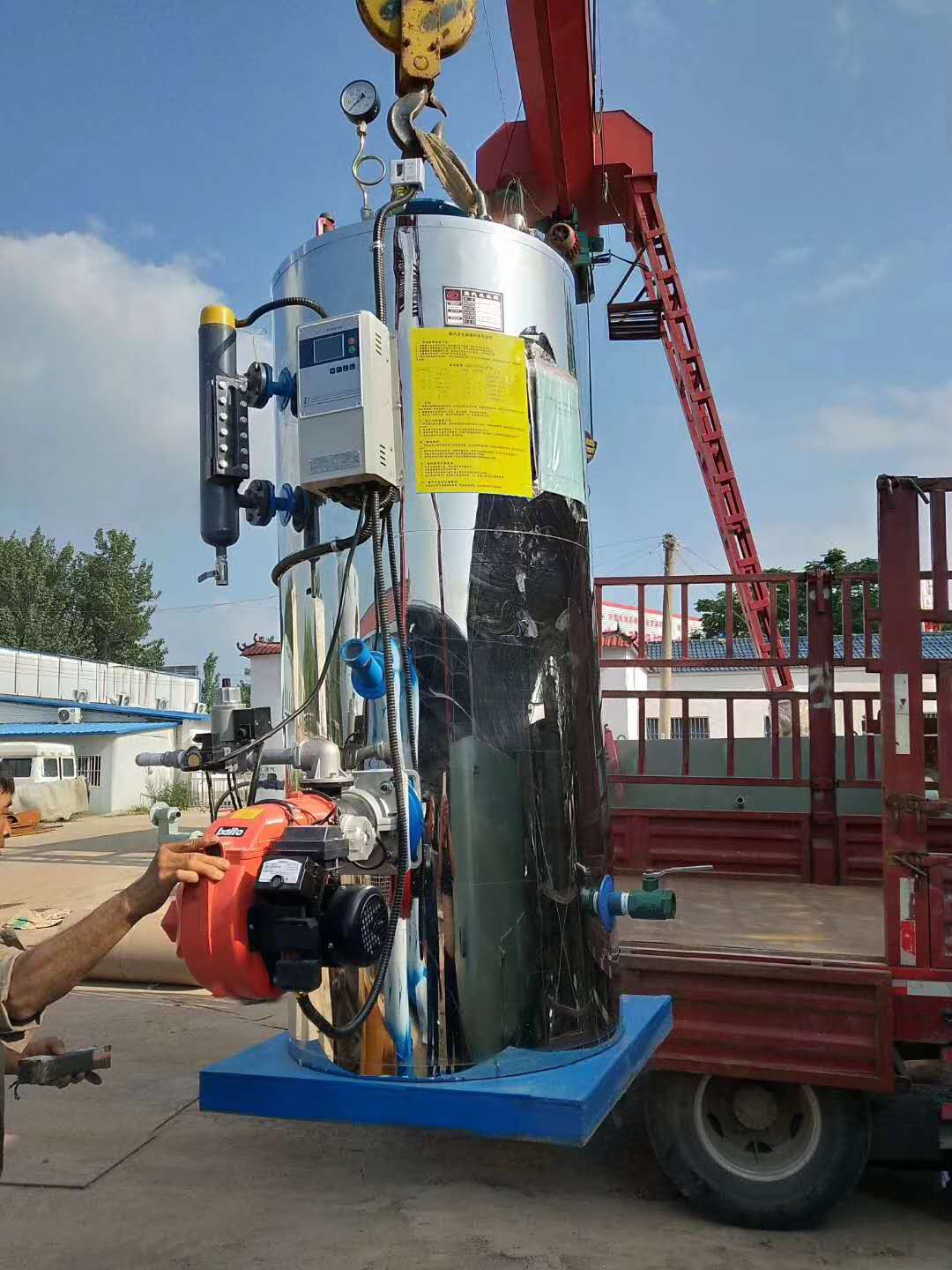 LSS型燃甲醇(醇基燃料)蒸汽發(fā)生器為立式快裝內(nèi)燃三回程火管鍋爐。燃料由外界氣源進(jìn)入燃燒器通過(guò)自動(dòng)調(diào)節(jié)、自動(dòng)點(diǎn)火功能產(chǎn)生高溫火焰,由爐膽頂部進(jìn)入爐膽內(nèi)的密排水管內(nèi)側(cè),在爐膽下部向折180°進(jìn)入爐膽與密排水管的夾層間,然后由爐膽下部煙道口折180°進(jìn)入筒體與包裝層之間的肋片層,煙氣在肋片間傳熱后由上部煙道口離開(kāi)鍋爐到囪排入大氣。鍋爐配置技術(shù)性能良好燃燒器,采用了燃燒自動(dòng)比例調(diào)節(jié),給水自動(dòng)調(diào)節(jié),程序啟停,全自動(dòng)運(yùn)行等先進(jìn)技術(shù),并具有高低水位報(bào)警和極低水位、超高汽壓、熄火等自動(dòng)保護(hù)功能。